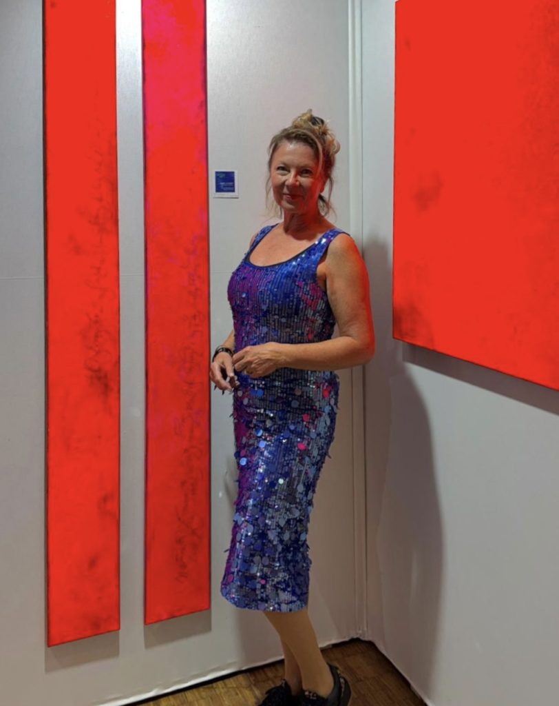 Isabel Kleinert in einer Ausstellung mit ihren Bildern